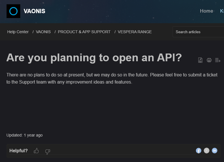 Vaonis made it very clear that a public API was highly unlikely.